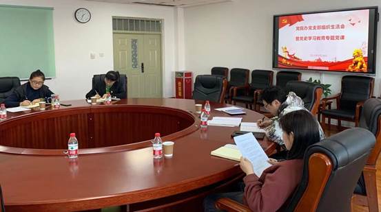 2021年3月24日下午党院办党支部在大厦715会议室召开组织生活会,并邀请党委书记王久成为支部全体党员上党史学习教育专题党课。