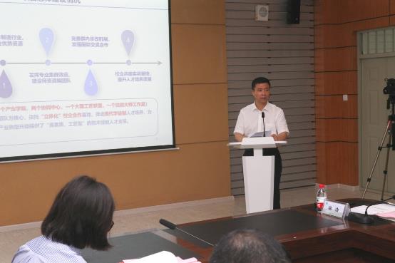 机械工程学院李跃中院长、信息工程学院马力院长分别对机械设计与制造专业群、计算机网络技术专业群的建设情况做专项汇报。