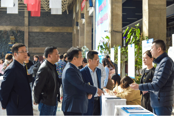 辽宁省大学生就业创业中心副主任和学院领导在双选会现场走访企业