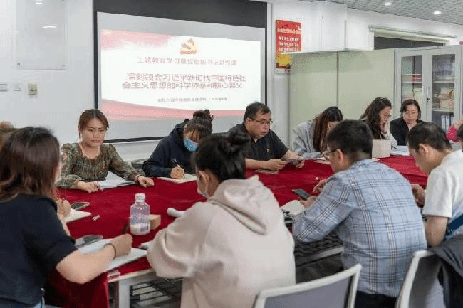 信息工程学院党总支牢牢把握“学思想、强党性、重实践、建新功”的总要求,召开专题会议、主题学习、集体读书会等活动,同时充分依托学习强国等平台,线上线下双管齐下,推动理论学习往深里走、往实里走、往心里走。党总支书记姚学峰以“深刻领会习近平新时代中国特色社会主义思想的科学体系和核心要义”为题,面对全体党员开展主题党课,引导师生要牢牢把握主题教育总要求,深入领会其重要意义,全面把握其丰富内涵,切实将其贯穿主题教育全过程,推动主题教育取得实实在在的成效。各支部书记多次领学,组织党员集体学习《习近平新时代中国特色社会主义思想专题摘编》,同时结合自学,引导党员开拓自主学习广阔天地,助力个性学习常态化。