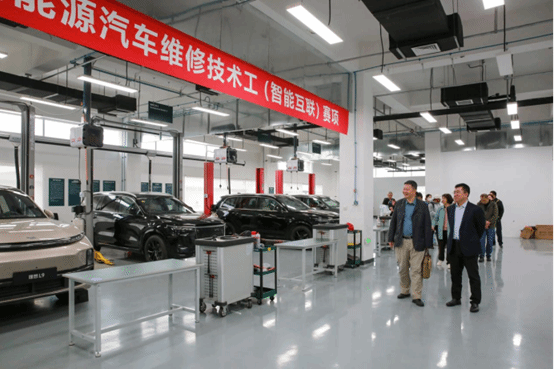 陈建一行先后参观众育英才联合培养示范基地、华晨宝马全新职业教育项目联合培养示范基地、工业产品检验检测中心和工业4.0学习工厂、理想汽车实训室。