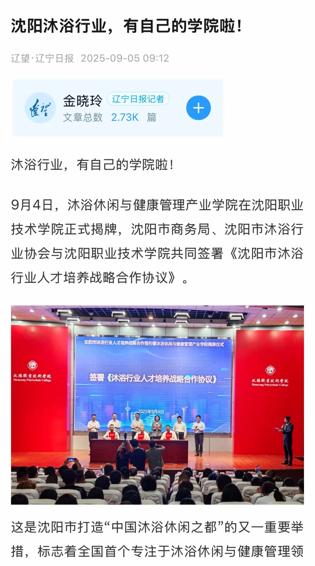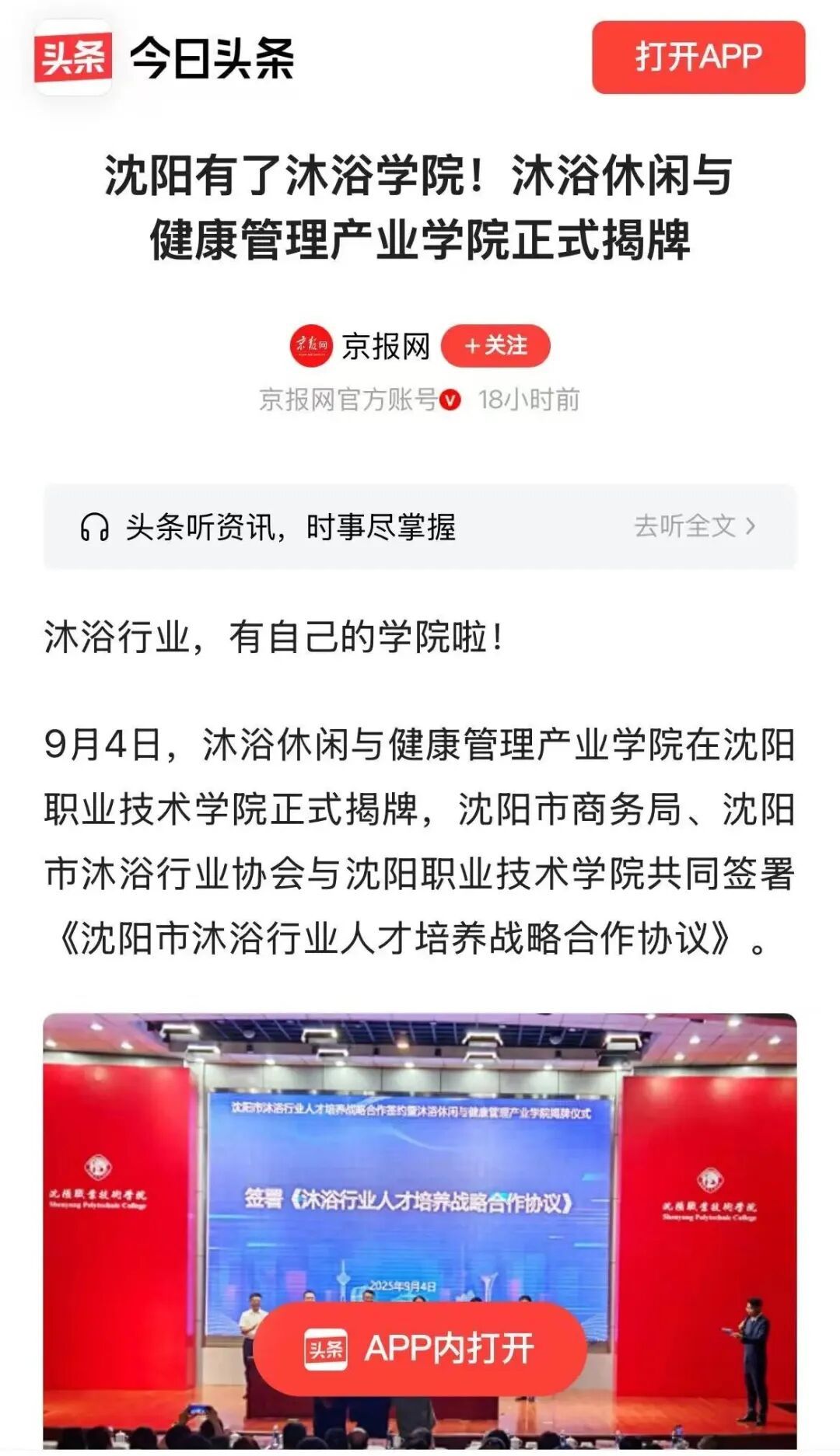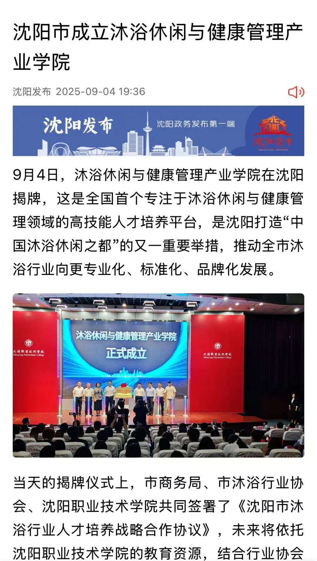 今日头条:沈阳有了沐浴学院!沐浴休闲与健康管理产业学院正式揭牌