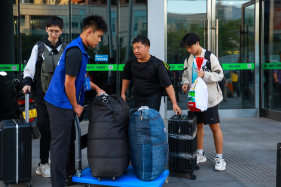 清晨6时,由学校师生组成的“迎新接站团”早早抵达沈阳站、沈阳北站等交通枢纽。志愿者们身着统一服装,高举印有学校标志的接站牌,从行李搬运、路线引导,到答疑解惑、发放《新生入学手册》,细致周到地为新生提供“一站式”服务。