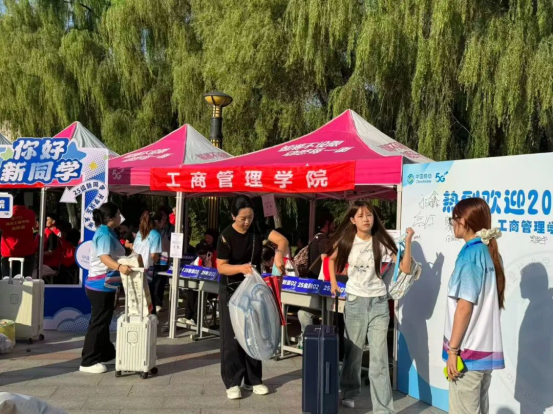 各二级学院以特色鲜明的迎新形式,让新生初遇即感受到学院的温情与专业的魅力。报到点位上的各学院师生热情温暖、井然有序地帮助新生完成信息核对、资料领取、报到向导等流程,主动分享专业学习心得与校园生活经验,搭建咨询展位为新生及家长答疑解惑。从专业认知引导到生活需求响应,学院老师和辅导员们用行动成为新生初入校园时最可靠的“引路人”。