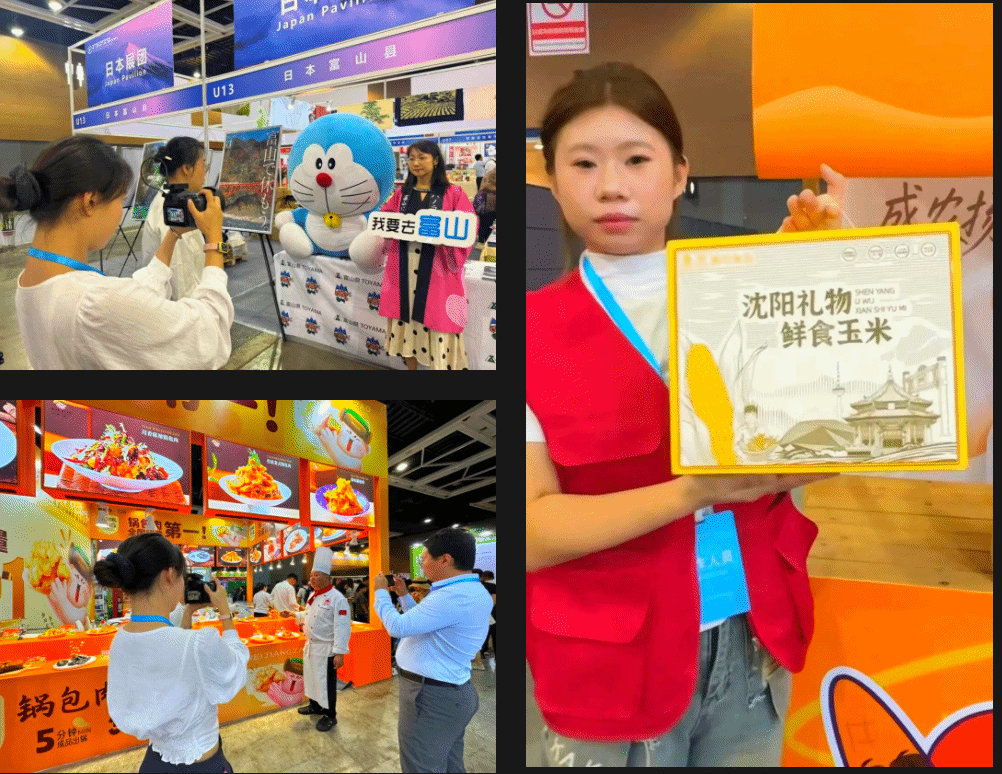 本届农博会为短视频与直播教学提供了实践平台。活动期间,团队共发布短视频20条,其中为商家录制品牌宣传采访视频10条,个人开播4场。展会上,学生现场观摩学习成熟达人拍摄和直播,更加直观地掌握操作技巧,提升专业能力。