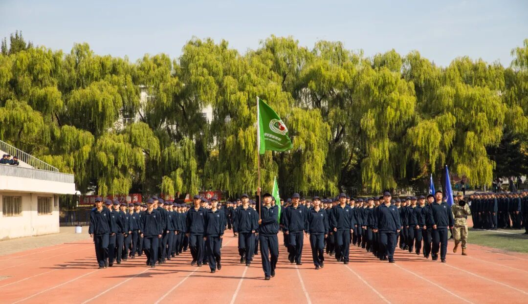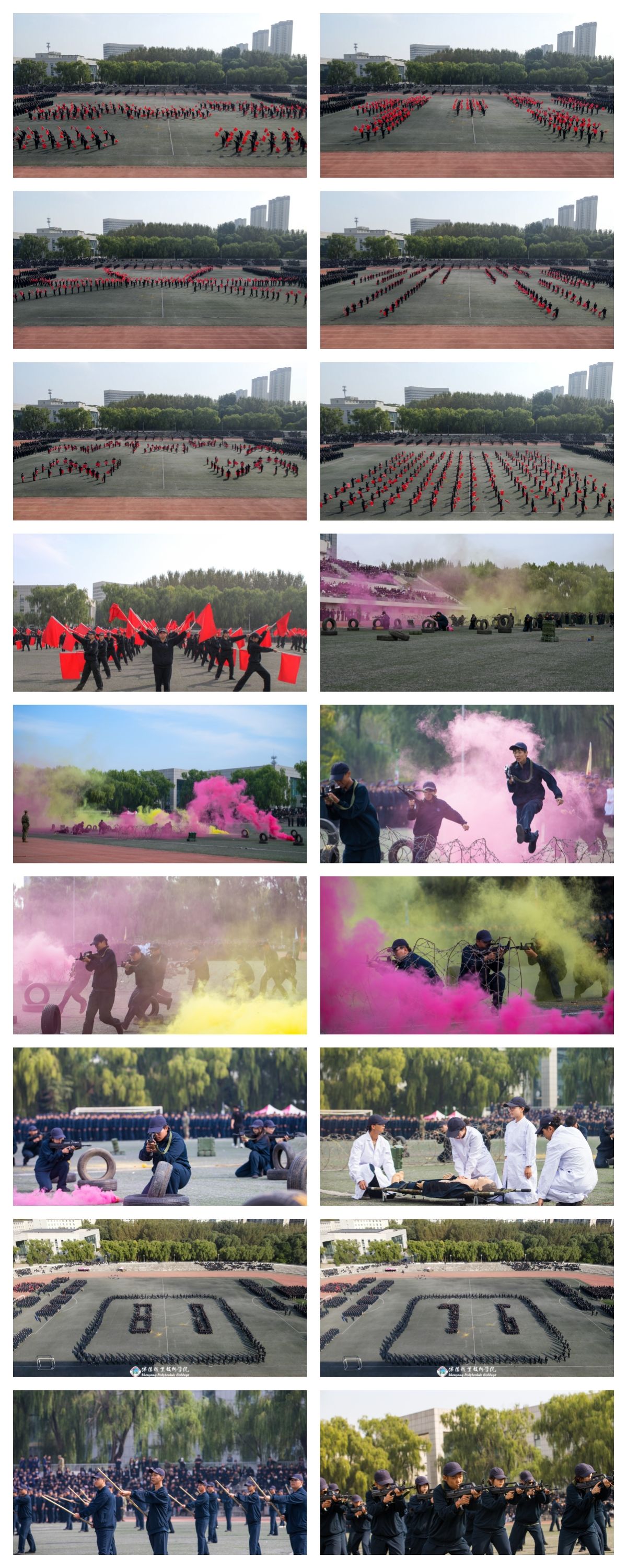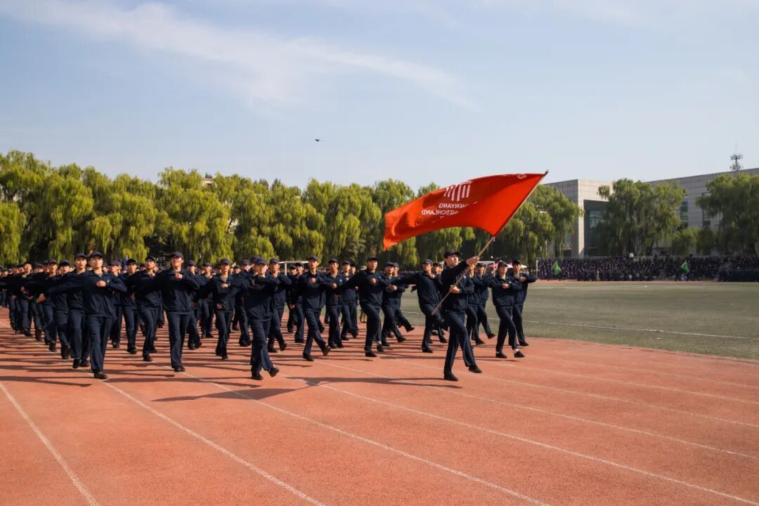 军训成果汇报展示在格斗术虎虎生风的呐喊声中正式上演,成为大会最引人瞩目的环节。新生们以饱满的热情、整齐的步伐,全方位展示训练成果。格斗术表演刚劲有力,一招一式彰显着青春的锐气与蓬勃的朝气;分列式队伍步伐铿锵,嘹亮的口号响彻操场,展现出新时代学子的昂扬风貌与坚定信念;刺杀操、应急棍方队气势如虹,尽显军人风采与坚毅气魄;旗操方队动作整齐划一,旗帜挥舞间尽显活力与激情;战术对抗演练及应急演练环节,新生们反应迅速、配合默契,展现出较强的应急处置能力与团队协作精神;由600名新生组成的团体操表演《强国有我》,更是将成果展示推向高潮,同学们用优美的动作与坚定的眼神,诠释着“请党放心,强国有我”的青春誓言,赢得现场阵阵热烈的掌声。