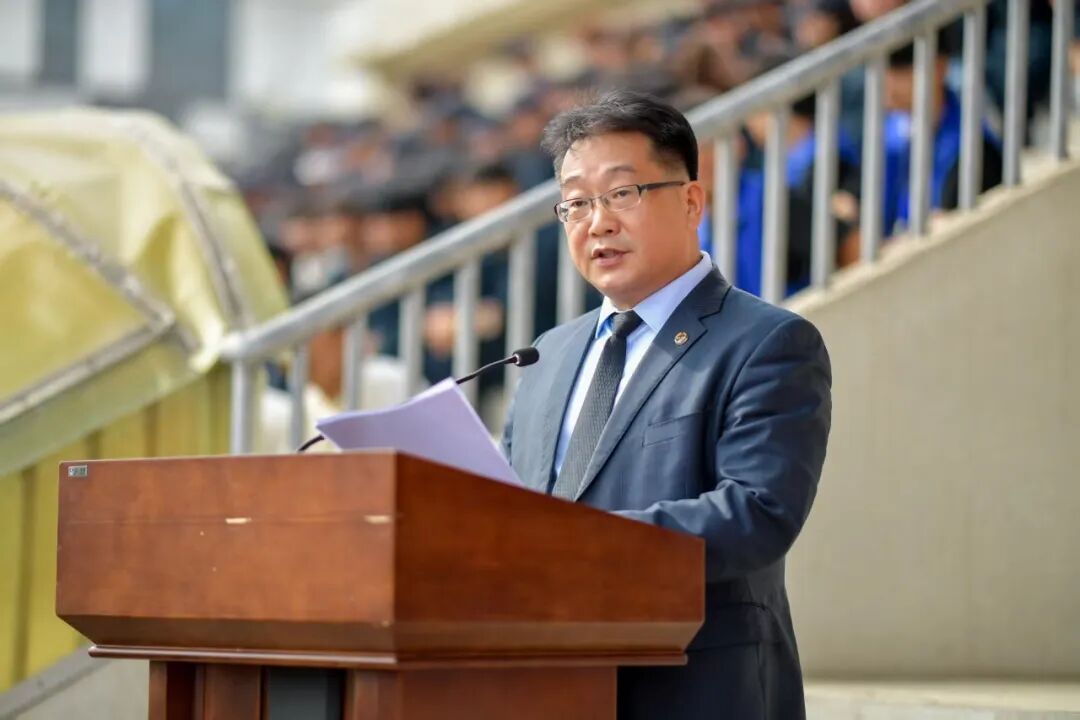 李展超以“淬炼成钢启新程 强国有我勇担当”为题,代表学校全体教职员工,向正式加入沈职院大家庭,开启人生崭新征程的5879名新同学致以最热烈的欢迎和最诚挚的祝贺!向悉心指导军训、用钢铁意志锤炼同学们品格的部队教官们,致以最崇高的敬意。他高度赞赏同学们的军训成果,并就同学们如何度过关键的大学时期分享四点期望。一是以红色精神为魂,做心怀家国的“追梦者”,“志不立,天下无可成之事”,希望同学们以九三阅兵所传递的“精神基因”为指引,把“强国有我”的誓言刻在心里,将个人理想融入国家发展大局,为推进强国建设、民族复兴作出青年人的应有贡献;二是以军训磨砺为基,做坚韧不拔的“实干者”,“技不精,业中无立身之本”,希望同学们珍惜每一次的理论学习与实训操作,只有将技能练到“炉火纯青”,才能在未来的职场中站稳脚跟,为破解“卡脖子”难题贡献力量;三是以教官教诲为要,做坚守纪律的“自律者”,“身不律,青春无坚毅之基”,希望同学们将“自律”作为大学生活乃至未来人生的“精神锚点”,用心延续、用力践行,守住底线、行稳致远;四是以修身立德为本,做向上向善的“奉献者”,“君子不器,器识为先”,希望同学们“扣好人生第一粒扣子”,感恩父母的养育、感恩老师的教导、感恩同学的帮助,学会谦让、学会宽容,立志“向上”、追求“向善”,成长为德艺双馨的高技能人才。愿同学们以此次军训为起点,树鸿鹄之志、练过硬本领、守自律之心、修高尚之德,成长为心中有梦、眼里有光、肩上有责、脚下有路、身上有劲的时代新人,在推动辽沈全面振兴、实现中华民族伟大复兴的征程中,绽放青春光彩。