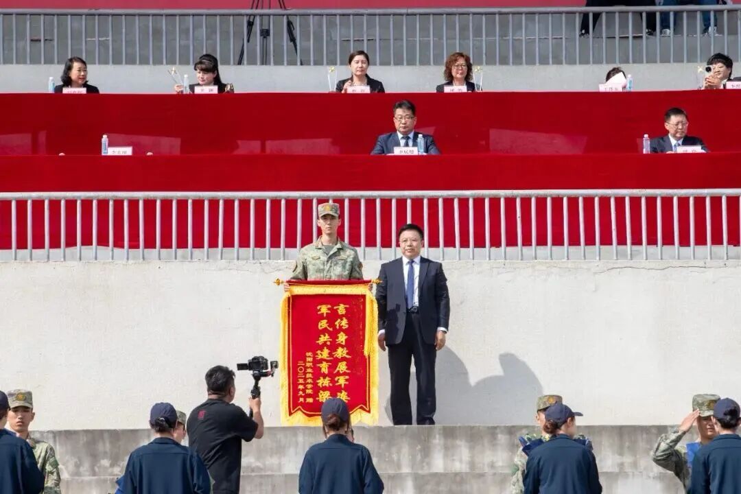党委书记李宏印代表学校向承训部队赠送锦旗,感谢部队为军训工作付出的辛勤努力。学生代表向教官代表献上鲜花,以表达全体新生对教官的敬意与感谢。真挚的情感如暖流般流淌,让现场氛围格外温馨。