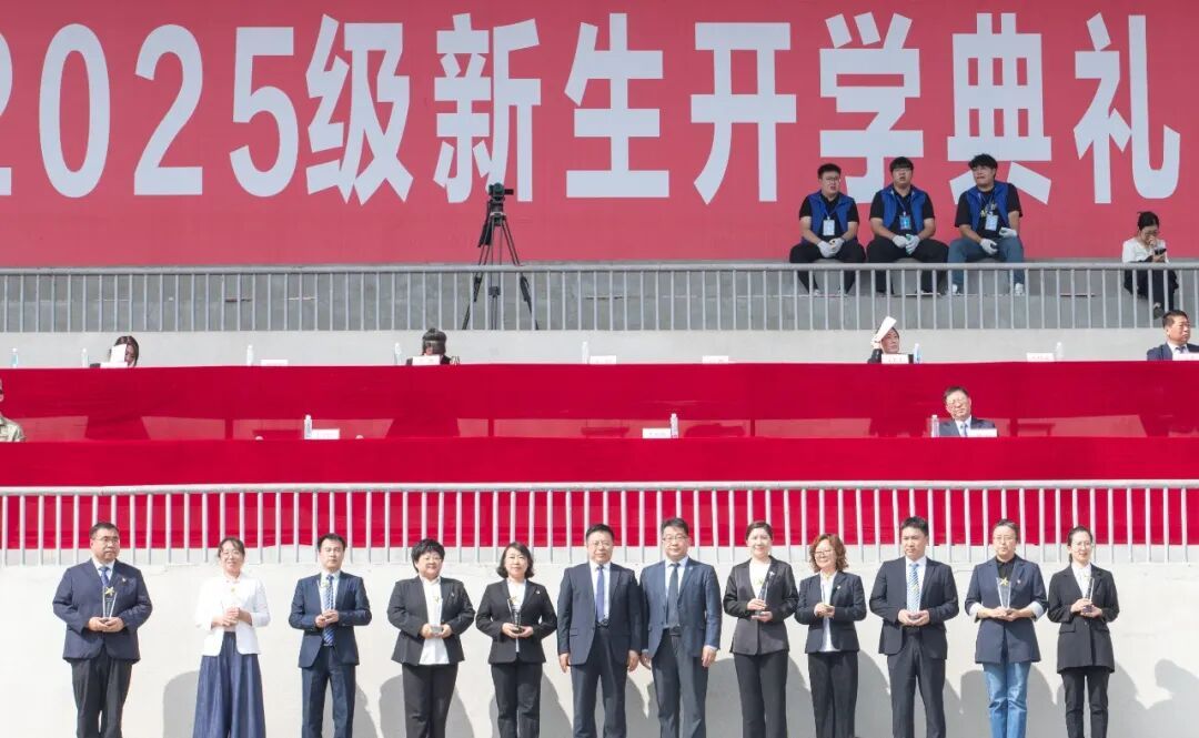 9月27日上午9时,学校2025级新生开学典礼暨军训成果汇报大会在操场举行。全体领导班子成员、全校教职工、承训部队教官、2025级全体新生共6000余人参加大会。大会由学校副校长徐岩主持。