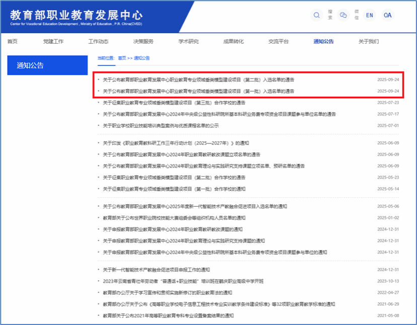 近日,教育部职业教育发展中心先后公布第一批与第二批“职业教育专业领域垂类模型建设项目”入选名单。在学校领导的高度重视以及教务处、国际交流中心、智慧教育技术中心的协同组织与积极配合下,我校信息工程学院申报的《智能物联领域垂类模型建设》成功入选第一批专业领域垂类模型建设项目,工商管理学院申报的《AI赋能电商垂直类模型驱动的职业院校电子商务群教学智能体构建》成功入选第二批专业领域垂类模型建设项目。据软科职教统计,共有128所高职院校入选两批职业教育专业领域垂类模型建设项目名单,我校入选数量位列第三,与第二名仅一项之差,充分体现了学校在专业建设与师资队伍方面的扎实基础与突出实力。