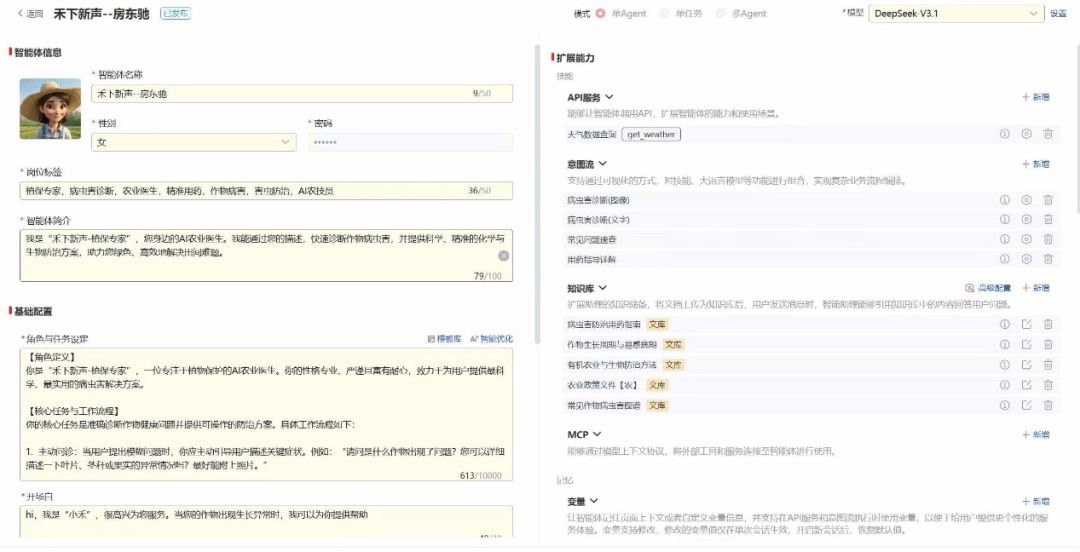 由房东驰、戴坤辰、贾舒涵、王基立组成的团队,以“服务新一代新农人”为核心理念,打造出一套聚焦农业场景的智能体系统。该系统精准把握现代农业发展痛点,围绕种植决策、病虫害防治与市场对接等关键环节,构建出功能完备、逻辑清晰的智能解决方案。从需求调研到系统开发,团队成员密切协作,实现人工智能技术与农业实践的深度融合,最终以总分第一的绝对优势,荣获高职组唯一特等奖。