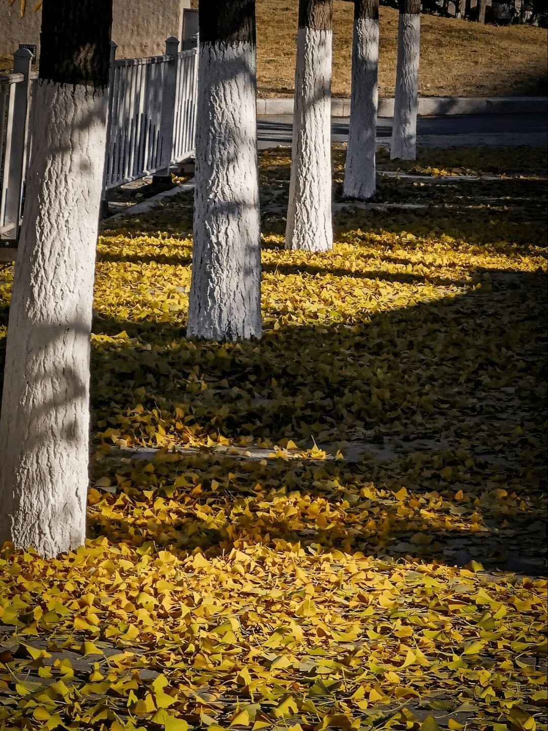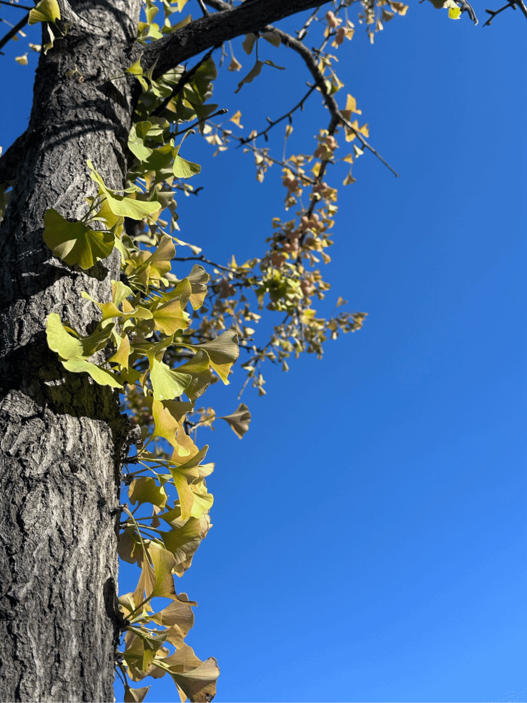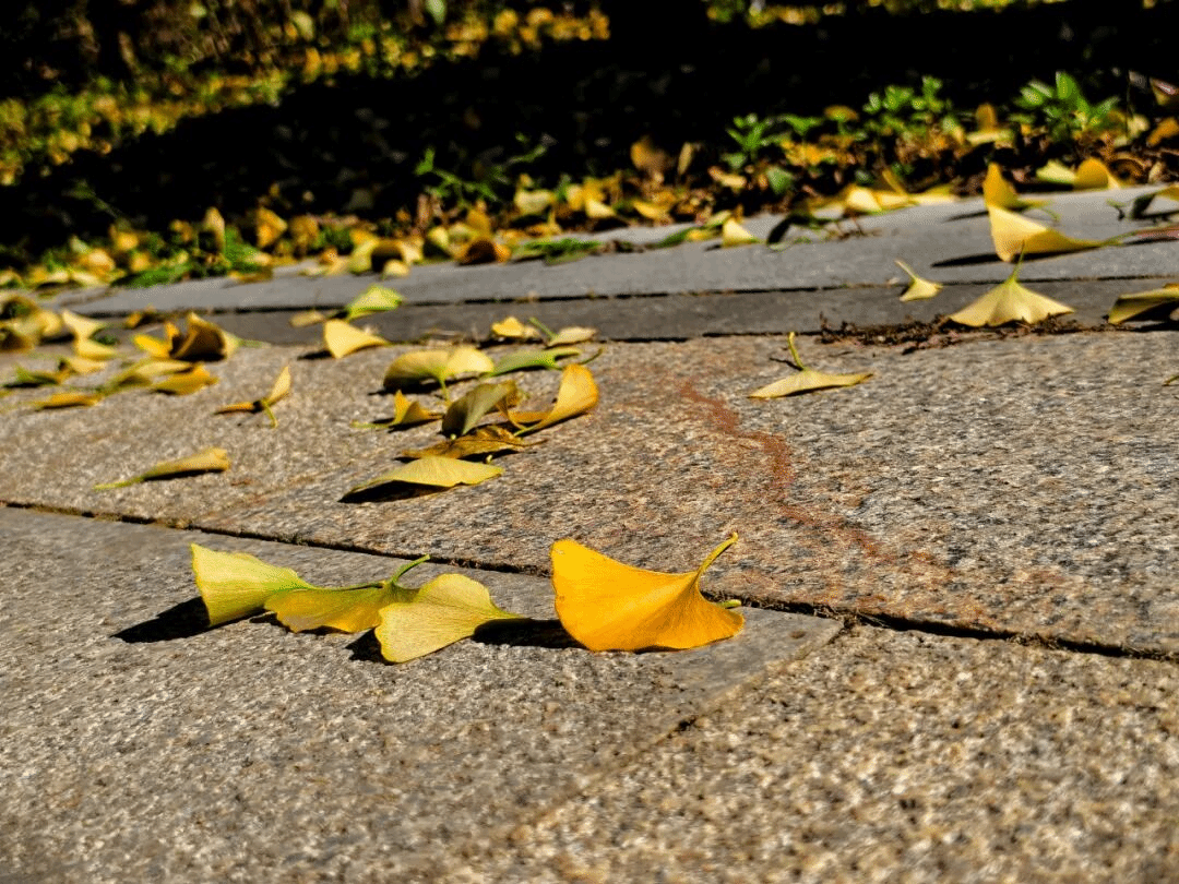 与枫叶的热烈形成鲜明对比的,是银杏的温柔。校园里的银杏道早已被一片金黄铺满,那扇形的叶片像是被镀上了一层金边,在阳光下闪闪发光,耀眼却不刺眼。风一吹,满树的银杏叶簌簌作响,像是在演奏一首秋日的歌谣,偶尔有叶片随风飘落,铺成一条金色的小径,通往知识的殿堂。学子们捧着书本穿梭其间,衣角拂过飘落的银杏叶,清脆的朗读声与落叶的轻响交织,成了沈职秋日里最动听的旋律。