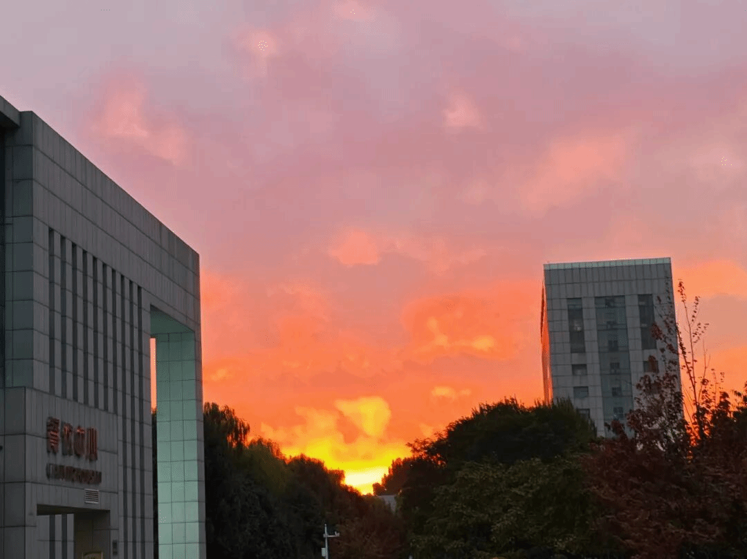 当黄昏降临,落日为校园披上了一层温柔的滤镜。橘红色的霞光漫过教学楼的屋顶,洒在操场的跑道上,也映在学子们的笑脸上。远处的楼宇被落日的余晖染成暖黄色,连空气中都弥漫着慵懒而惬意的气息。三三两两的同学并肩走着,聊着课堂的收获,说着未来的期许,落日的温柔包裹着每一个身影,把时光都变得缓慢而美好。