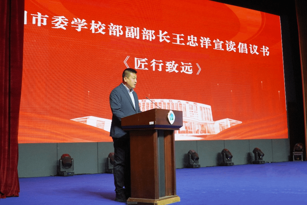 王忠洋宣读倡议书,呼吁全体工匠班学员以许振超同志为榜样,传承“干就干一流,争就争第一”的振超精神,以青春之名,赓续工匠精神;以梦想之名,夯实技能本领;以未来之名,阔步奋斗征程。