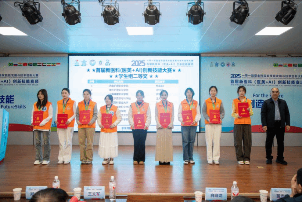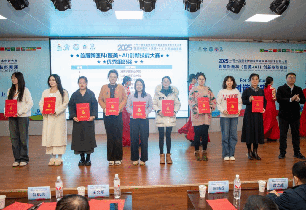 近日,2025一带一路暨金砖国家技能发展与技术创新大赛首届新医科(医美+AI)创新技能赛项全国总决赛在潍坊护理职业学院落幕。我校健康管理学院师生凭借扎实的专业能力与高效的备赛组织,在全国参赛队伍中脱颖而出,收获多项荣誉。