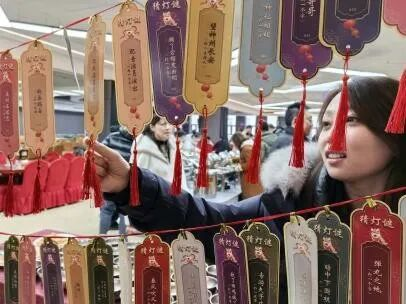 活动现场最热闹的,当属那片五彩斑斓的灯谜区。