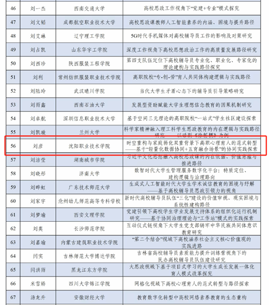 近日,2025年高校思想政治工作优秀文章征集活动评选结果揭晓,学校基础教学部兼职辅导员刘彦《时空重构与家庭弱化双重背景下高职心理育人的范式转型 ——基于“轻量化数据协同+五育融合场景”的协同实践探索》荣获“优秀论文”称号。