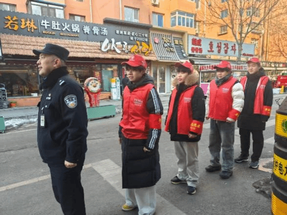 商圈服务现场同样暖意融融。在西塔商圈,机械工程学院志愿者在党总支书记的带领下开展治安巡逻与便民服务,累计服务时长超60小时,覆盖群众100余人次,严谨作风与热情服务获得辖区群众与公安领导的双重点赞;旅游艺术学院学子在此争当“便民使者”,提供物品寄存、应急帮扶等服务,与属地分局、派出所密切联动,织密节日安全防线。与此同时,在铁西万象汇,另一部分志愿者与铁西人民公安携手开展反诈宣传活动,通过发放手册、现场答疑等方式,向群众普及诈骗防范技巧,帮助长辈们筑牢反诈“防火墙”,有效提升群众防骗意识。
