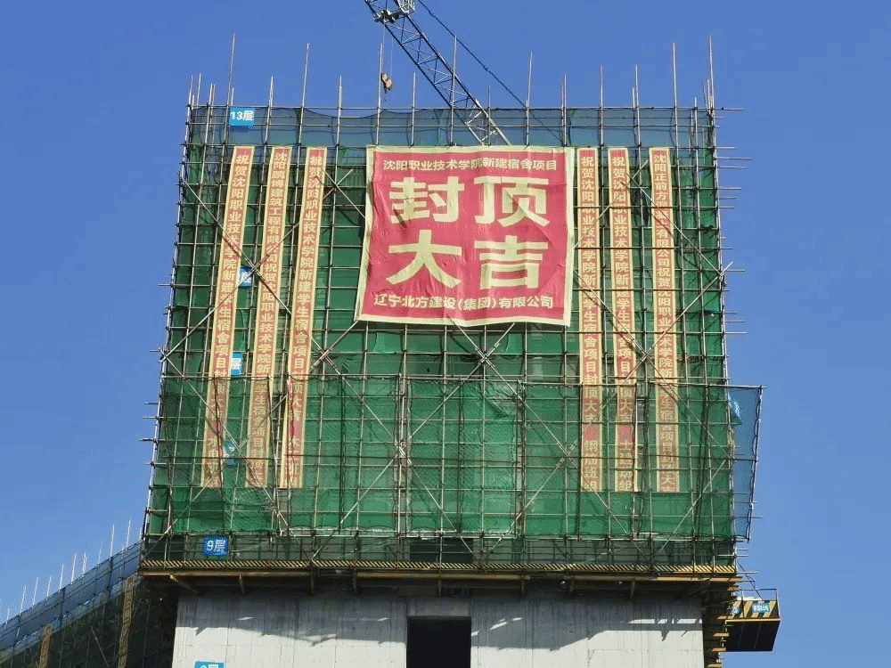 2022年是校园基建项目面临极大挑战的一年。上半年疫情防控校园封闭影响了新建学生宿舍项目拟建计划,暑假期间又赶上沈阳区域连雨天、地质条件复杂等多因素影响。学院党委领导班子高度重视项目进展,基建部门克服各种困难全力推进。所有人员坚持“目标不变、质量不减”,为项目建设按下“加速键”,全力以赴把延误的时间抢回来,以短短两个半月的暑期完成13层主体工程建设,终于在九月末提前封顶。新建学生宿舍预计2023年9月投入使用,为学生提供优越的生活环境。