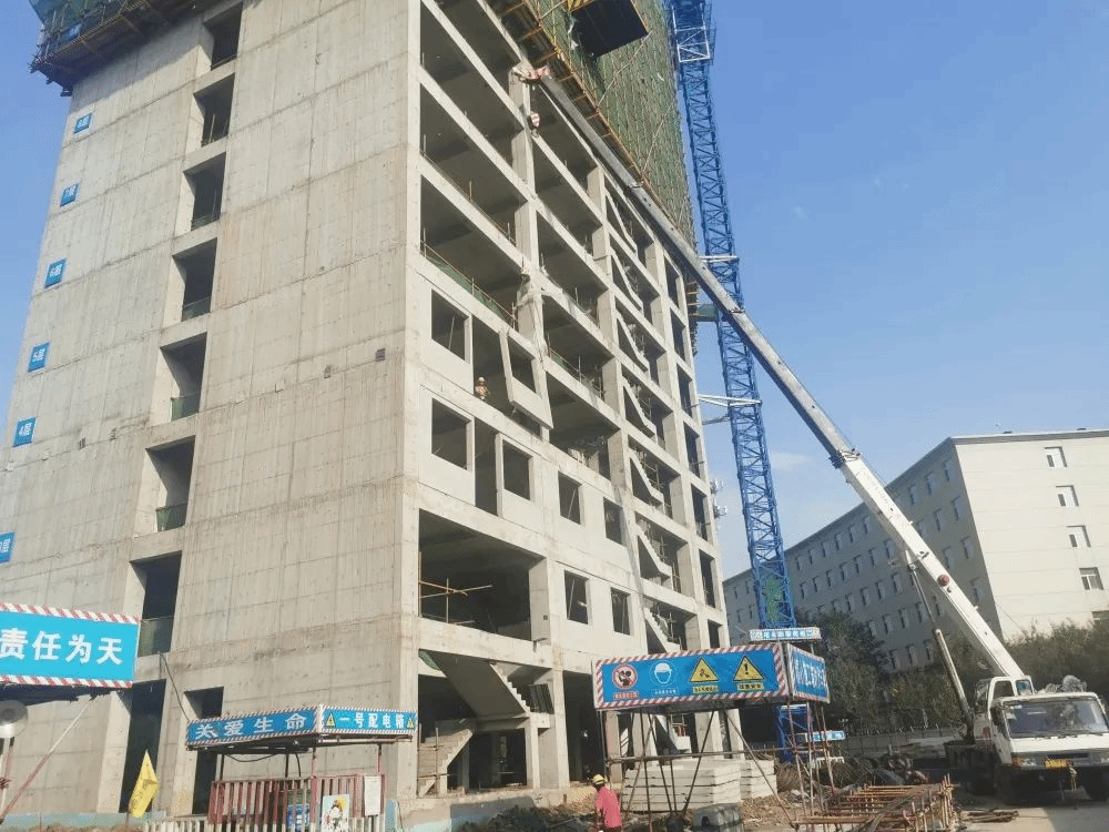在新建学生宿舍项目施工现场,所见之处皆是繁忙景象,运输材料的大货车来来往往,戴着口罩的现场施工人员有条不紊地施工作业。工人师傅们加班加点倒班施工,用一砖一瓦的辛勤劳作保障了来之不易的建设进度。当前,在提前完成项目封顶后,大家仍没有丝毫松懈,迅速地启动了内墙砌筑和外墙吊装工作,项目施工现场有序运转,工程进度稳步推进,努力争取新建学生宿舍项目年度建设目标也实现提前完成,让我们更早看到新建宿舍楼从“计划表”变为“实景图”,让学生们早日入住宽敞的宿舍。
