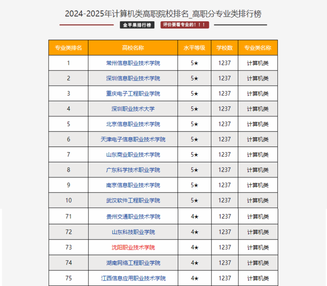 近日,备受瞩目的“金平果”2025年中国高职院校竞争力排行榜正式发布。我校信息工程学院凭借突出的专业综合实力和培养特色,在全国1237所院校中,位列计算机类全国第73名、东北地区第2名,再次荣登辽宁省首位。