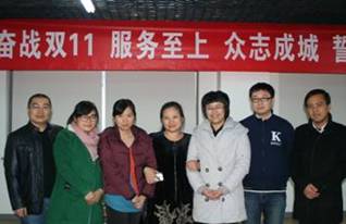 本项目分为岗前培训和项目实施两个阶段。国美在线运营团队一行4人在运营总监的带队下,为140名学生进行为期三天的集中培训并进行活动全程跟踪指导。培训内容包括产品信息、发货时间、沟通技巧及对产品的材质的详细讲解。经考核选拔,共有120人正式上岗。自10日21时40分起,120名学生分为三批轮番“上岗”,保证关键的17个小时内有60个旺旺在线。实训大厦11楼充满了紧张工作的气息。电子商务教研室的全体教师参与了项目培训与实施。大家相互打气,开始上线旺旺,伴随着不断响起的咨询声,“双十一”正式拉开大幕,数十台电脑里旺旺的叮咚声响个不停。截止到11日24时,学生连续奋战30个小时,实现81.5万元业绩,学生最高单人业绩达到3.03万元。