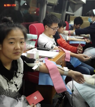 冬日的寒冷让同学们早早地着上厚外套,然而凛冽的风并未阻却同学们对于献血事业无私奉献的热情。上午八时,志愿者们早已在门口等候,他们面带微笑,热情地为每一位前来献血的同学服务。不一会儿,小舞台附近便人头攒动,同学们有条不紊的排着队,进行献血登记工作。每一笔,每一划都是他们人格无私美好品质的有力证据。必要的体检完成之后,便是正式血液采集取样工作。白衣天使们熟练的一系列准备后,准确无误地将针孔扎入静脉。摇晃的血袋中装的不仅仅是鲜血,是希望,是平凡中孕育的伟大,是陌生又熟悉的爱。
