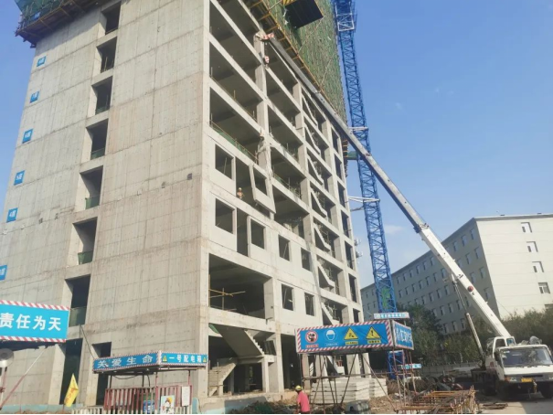 9月28日清早,伴随着灌浆机的轰鸣声,学院新建的10号学生公寓楼正式封顶。近年来,学院始终坚持以建设绿色校园、人文校园、和谐校园为目标提升校园基础设施,改善校园环境,不断提升办学服务保障水平,增强校园环境职教适应性。近几年随着职业教育快速发展,学院顺应时代需要增设专业,扩大办学规模,学生数量显著增加。学院领导高度重视学生在校生活条件,参照《普通高等学校建筑面积指标》,在市委、市政府及相关部门大力支持及学院各部门的全力保障下,2021年成功申请立项启动新建学生宿舍项目,即在主校区新建一栋13层的学生宿舍,总建筑面积达17228.63㎡,共279个寝室,可供千余名学生居住,其中一楼、二楼配备男、女多功能浴室,满足办学标准的同时提升校园生活品质,为学生生活提供便利。
