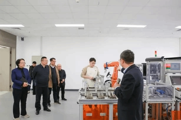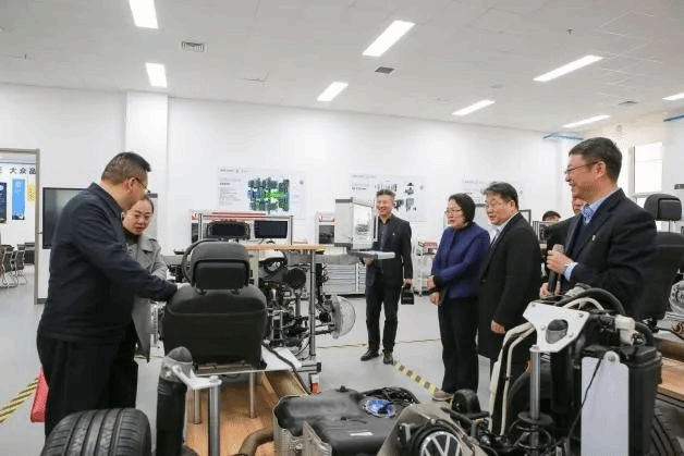 座谈会前,调研组一行先后参观了工业产品检验检测中心,工业4.0学习型工坊、工业实训中心、众育英才联合培养示范基地、华晨宝马全新职业教育项目联合培养示范基地。