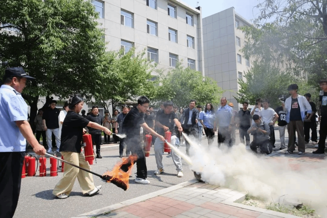 范海雷对师生们在演练中的出色表现给予高度评价,同时也针对一些细节问题提出宝贵的改进建议。校领导现场示范干粉灭火器的正确使用方法,详细讲解‘提、拔、握、压’四步要领后,学生代表踊跃参与实操。在一次次手把手的指导和互动中,同学们不仅掌握了灭火器的使用技巧,更深刻体会到了实践操作的重要性。