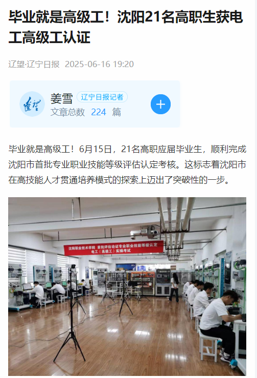 6月15日,学校组织的辽宁省首批评估论证专业电工(高级工/三级)职业技能等级认定工作圆满结束。经考核合格,毕业生可取得高级工证书,纳入高技能人才队伍。标志着我校在高技能人才贯通培养模式改革中取得重要突破。