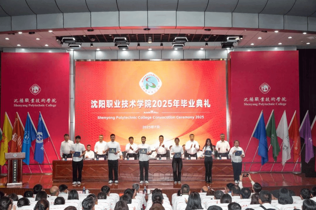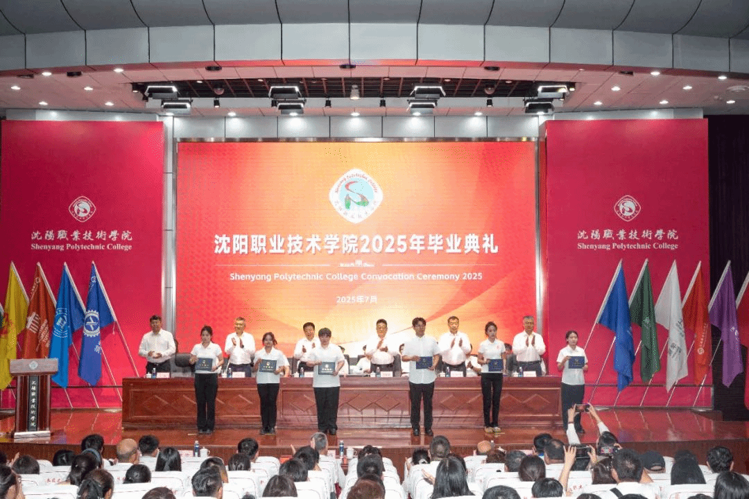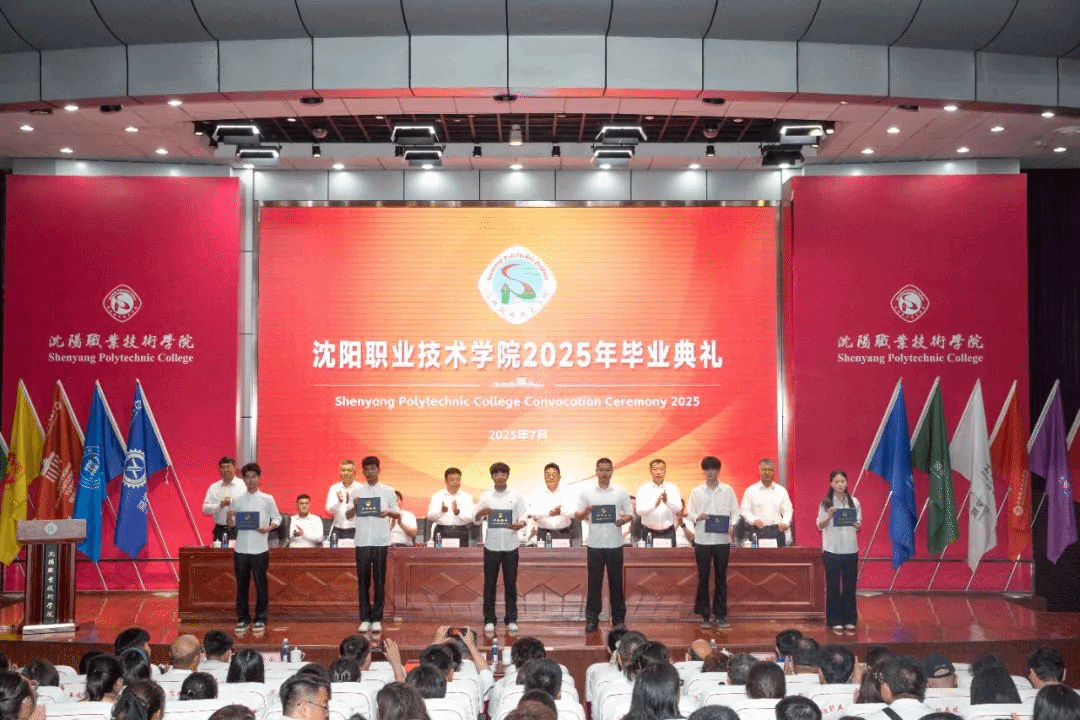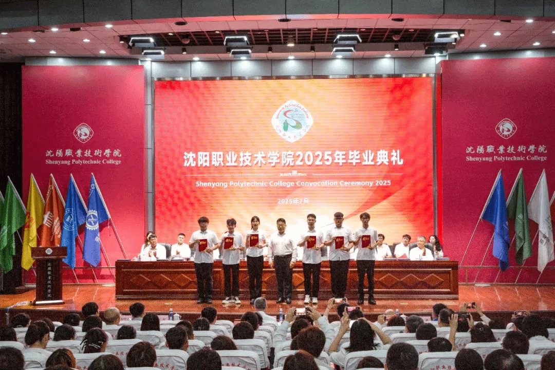 典礼在庄严的国歌声中拉开序幕。党委副书记夏宗光通报表彰188名辽宁省优秀毕业生及315名校优秀毕业生,副校长王浩宣读毕业决定。校领导为优秀毕业生代表及二级学院毕业生代表颁发证书,鲜红的证书凝聚着学子们“专心专注、精益求精”的沈职学风,更承载着服务东北振兴的时代嘱托。