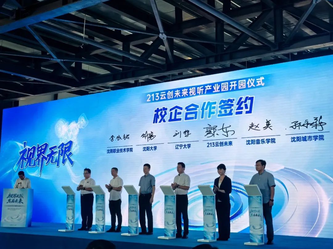 近日,213云创未来视听产业园开园仪式在大东区沈阳云创未来视听产业园举行。省、市、区相关领导,行业代表,沈阳高校负责人及14个市的企业代表,沈阳都市圈区县代表等嘉宾参加仪式。学校校长李展超受邀出席活动,并代表学校与产业园签署校企合作协议,推动产教融合与人才培养。