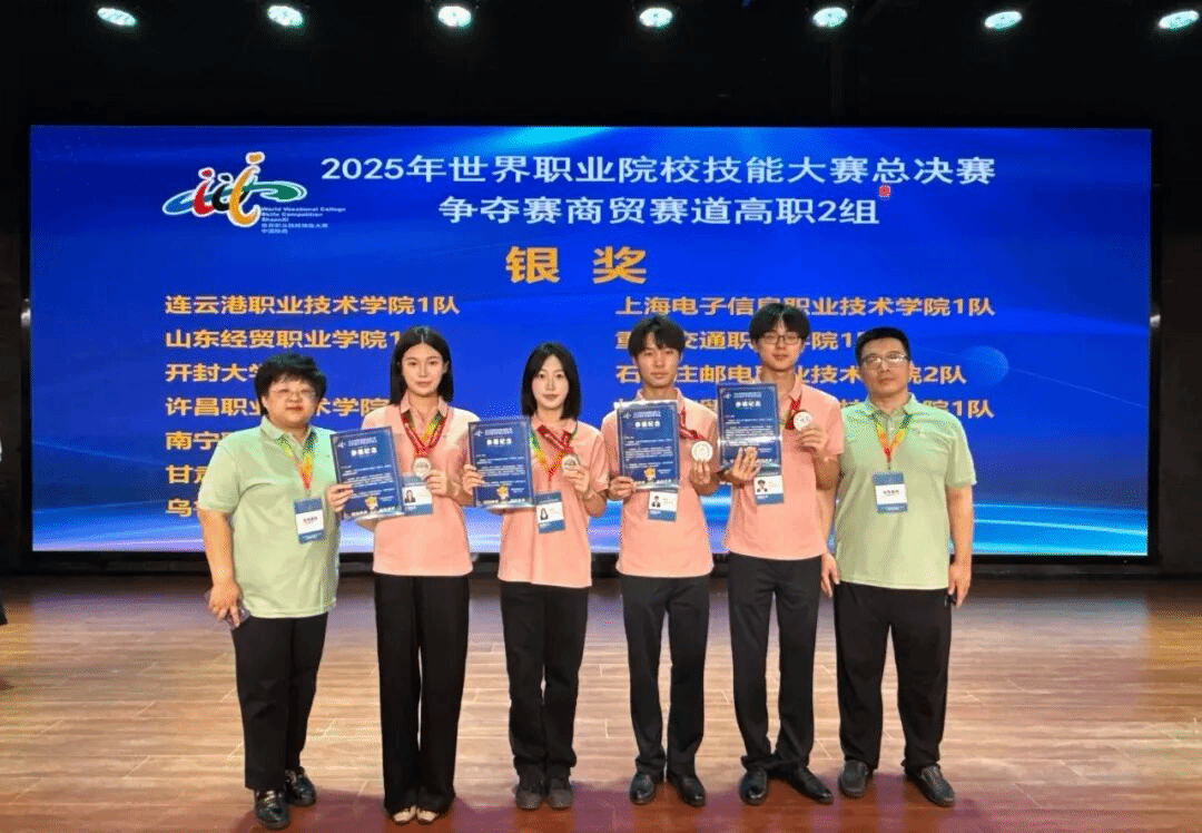 8月25日至8月29日,2025年世界职业院校技能大赛总决赛争夺赛商贸赛道(高职组)在陕西咸阳火热开赛。本次大赛以“技炫青春、能创未来”为主题,共有来自全国216支参赛队伍同台竞技,共同展现新时代职业院校学子的风采与实力。在这场高规格竞技盛会中,由学校工商管理学院李照清、沈宁两位老师悉心指导的电子商务专业黄诗雯、王京成、赵旭普、付万欣4位同学,凭借扎实的专业基础、娴熟的操作技能与出色的现场展示勇夺2025年世界职业院校技能大赛总决赛争夺赛商贸赛道全国银奖。