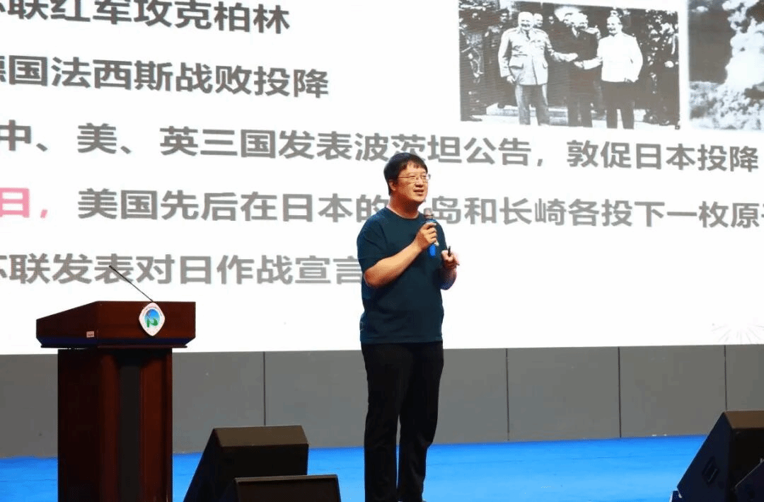 入团仪式后,由团市委宣传部四级调研员、沈阳共青团青年讲师团负责人孔祥征为全体新团员讲授《纪念中国人民抗日战争暨世界反法西斯战争胜利80周年》专题团课。
