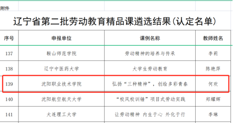 2022年5月份,辽宁省委教育工委组织开展了第二批劳动教育精品课遴选工作。经各市、各高校推荐、专家工作组评议、厅长办公会审议通过,认定省级劳动教育精品课148节,培育省级劳动教育精品课112节。我院获批省级劳动教...