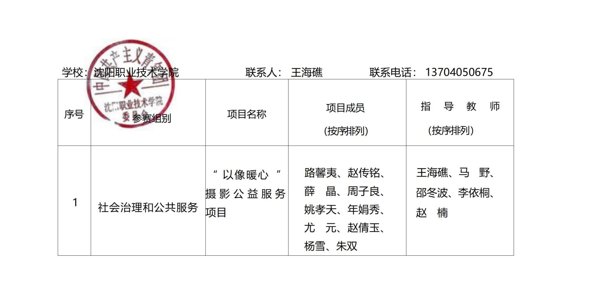 下一篇:关于沈阳职业技术学院《“以像暖心”摄影公益服务项目》作品推报参加第十四届“挑战杯”中国大学生创业计划竞赛主体赛项目成员学籍的公示